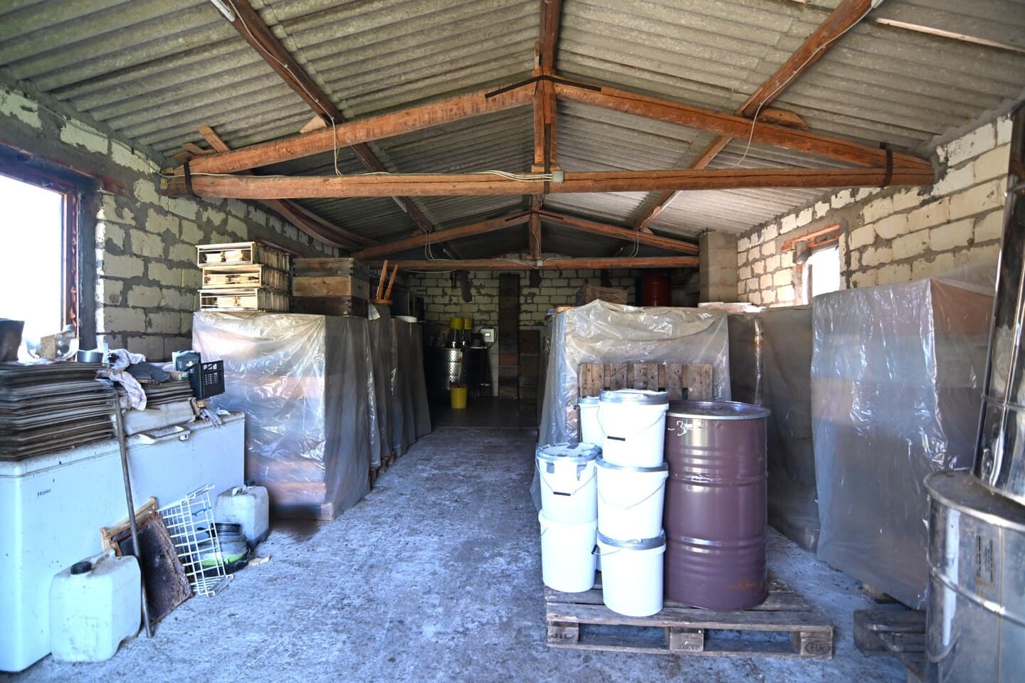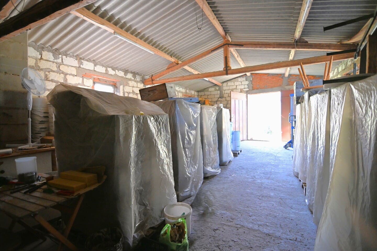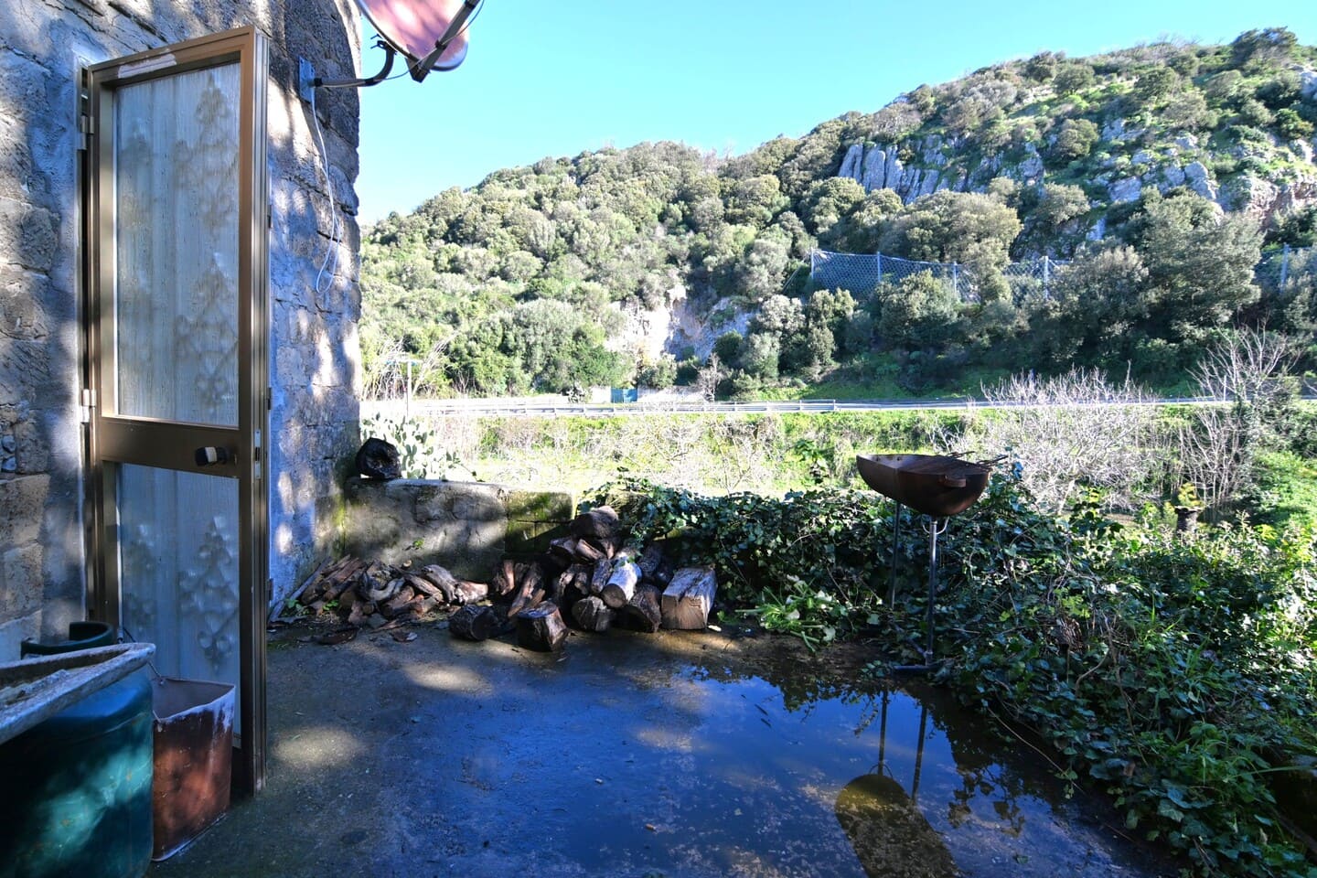 La proprietà si apre su un’area esterna di straordinaria ampiezza, caratterizzata da un terreno con uliveto in leggero dislivello che si estende fino alla strada che comunica col paese di Cuglieri, circondato da una parete montuosa. Comunicante con questo spazio sorge un capannone imponente, la cui struttura voluminosa e il soffitto alto permettono di percepire immediatamente la versatilità degli ambienti interni, offrendo molteplici possibilità di utilizzo.