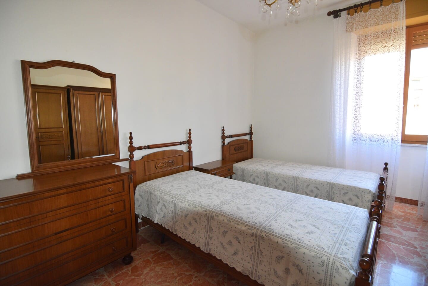 Le finiture risalgono agli anni ’70, ma si presentano in condizioni eccellenti, quasi come nuove, grazie al fatto che l’alloggio è stato abitato per un periodo limitato. Questo ha preservato gli intramontabili pavimenti in marmo dai colori chiari originali, che conferiscono alla casa una notevole luminosità.