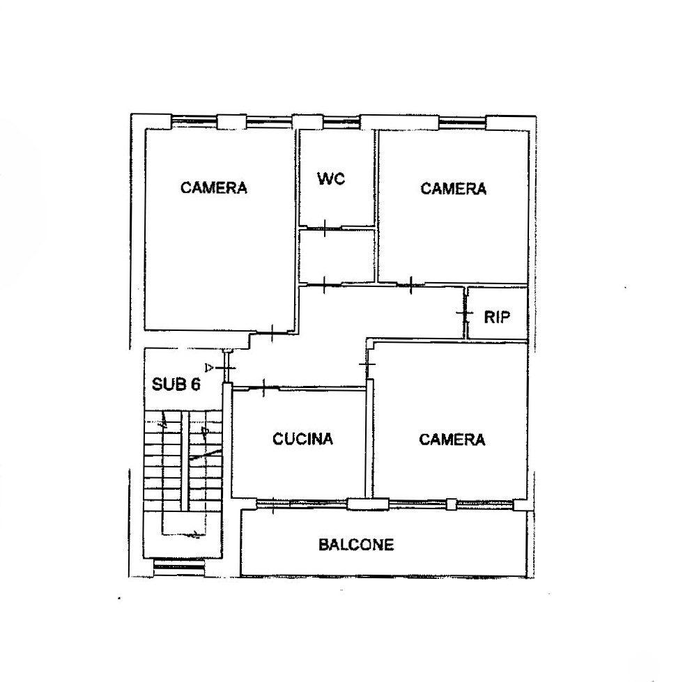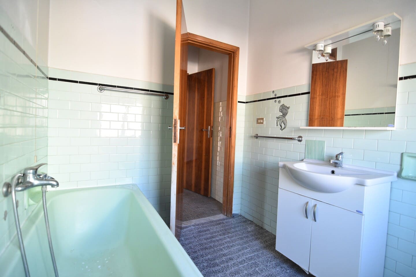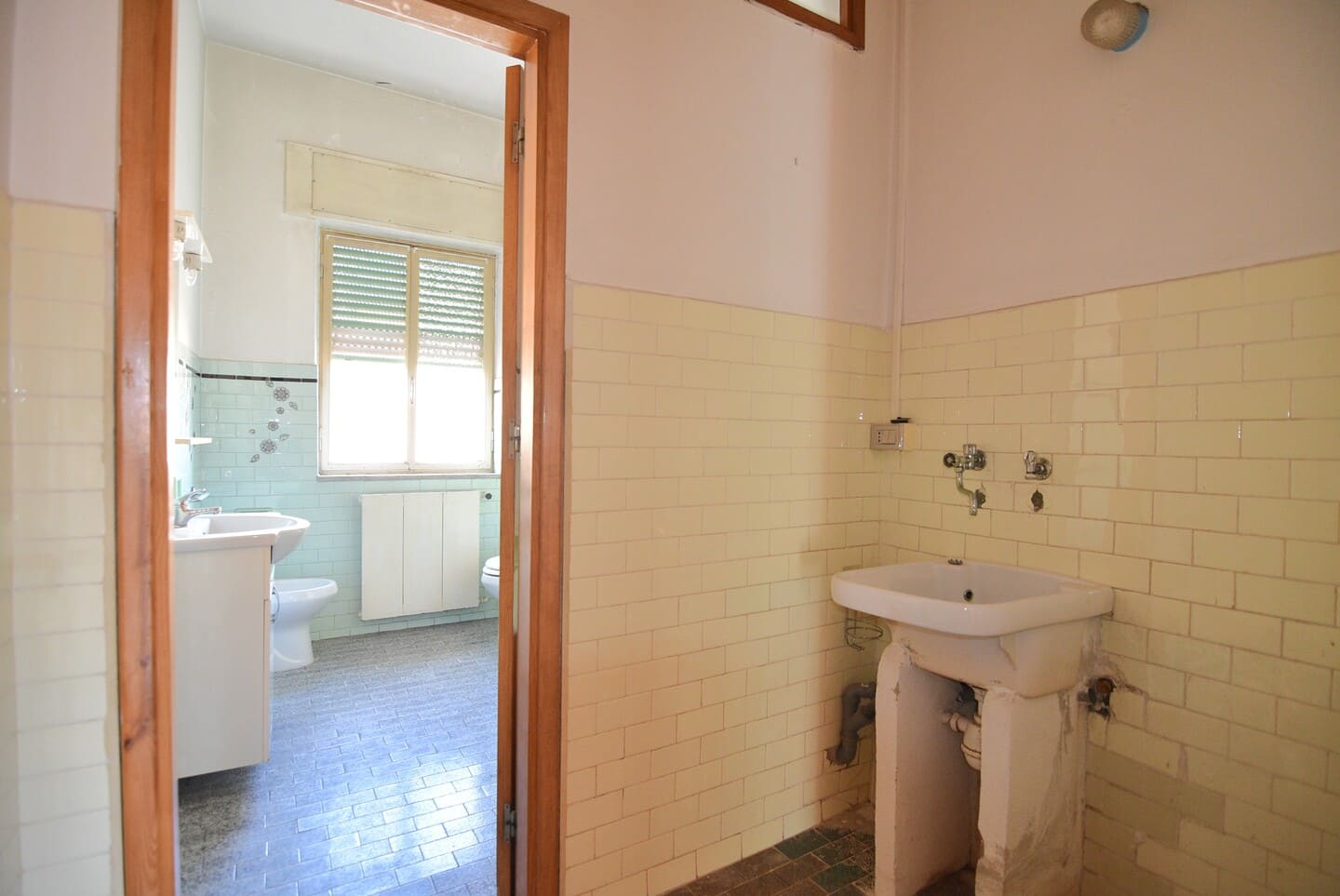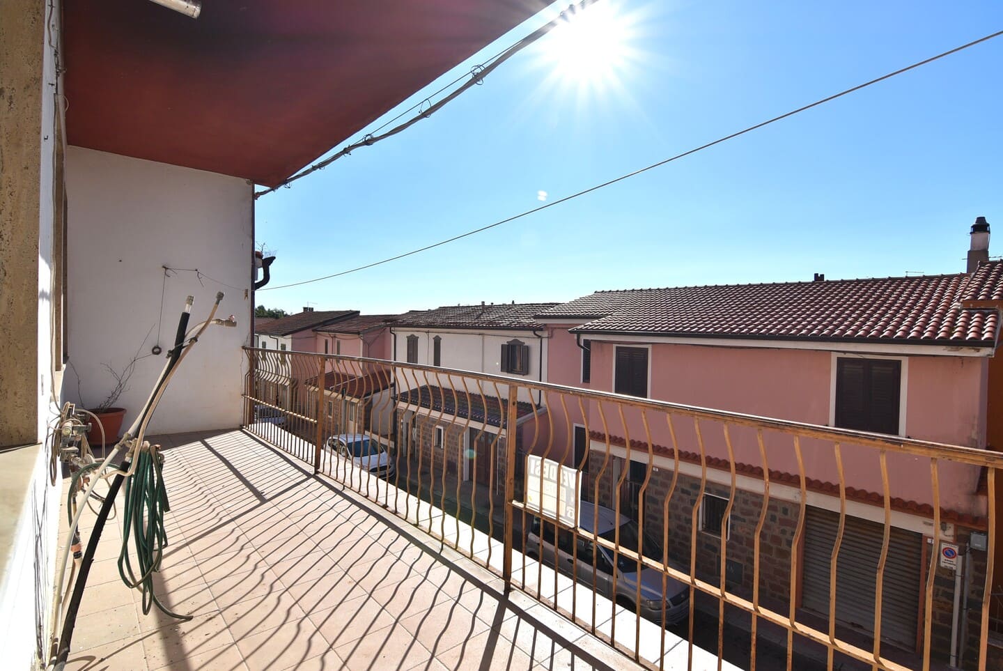La cucina semiabitabile ha diretto accesso all’ambio balcone soleggiato e calpestabile, affacciato sulla via principale, che garantisce luminosità durante tutta la giornata.