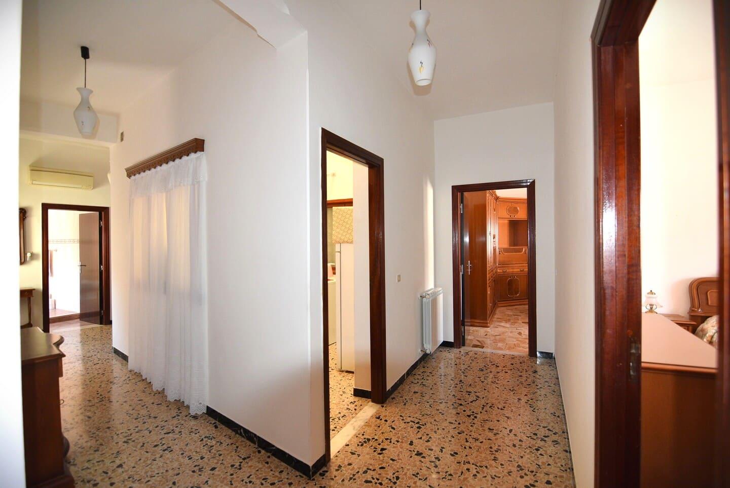 Il primo piano accoglie un appartamento rifinito e abitabile fin da subito, caratterizzato da una zona giorno funzionale con cucina dotata di caminetto, dispensa e balcone. La zona notte comprende due ampie camere da letto e un ulteriore ambiente versatile, attualmente adibito a soggiorno ma facilmente trasformabile in una terza camera. Il comfort climatico è garantito da un impianto di riscaldamento a gasolio con radiatori, completato dalla praticità di un vano lavanderia dedicato.