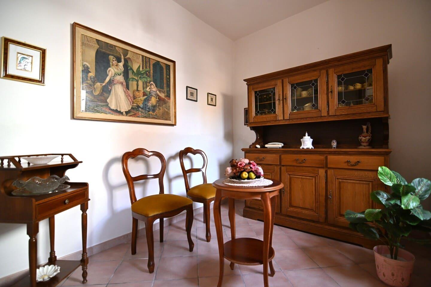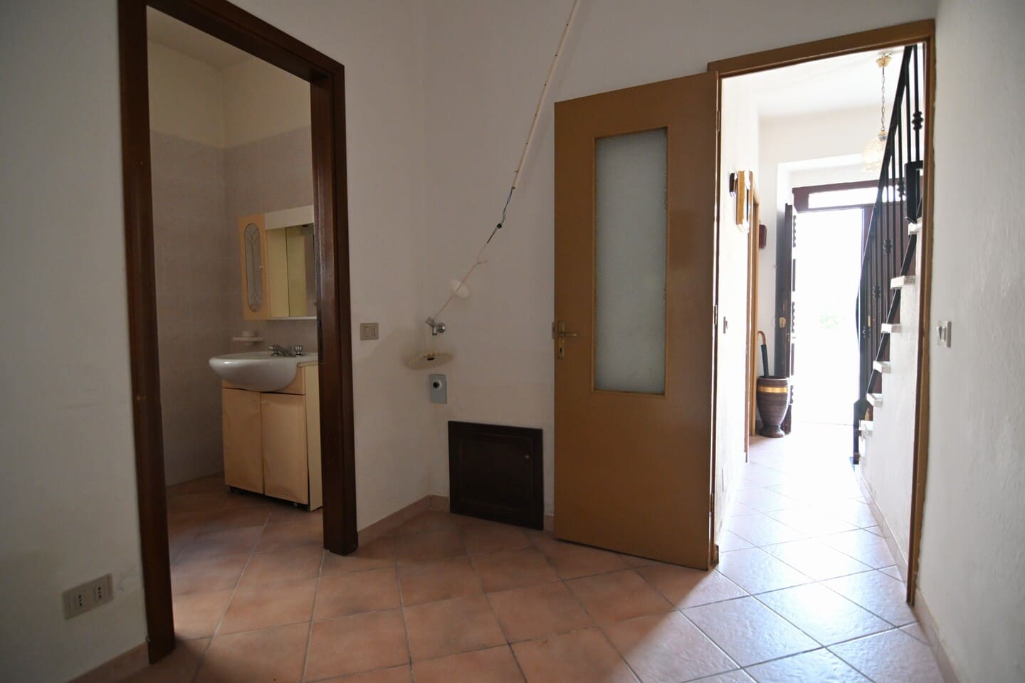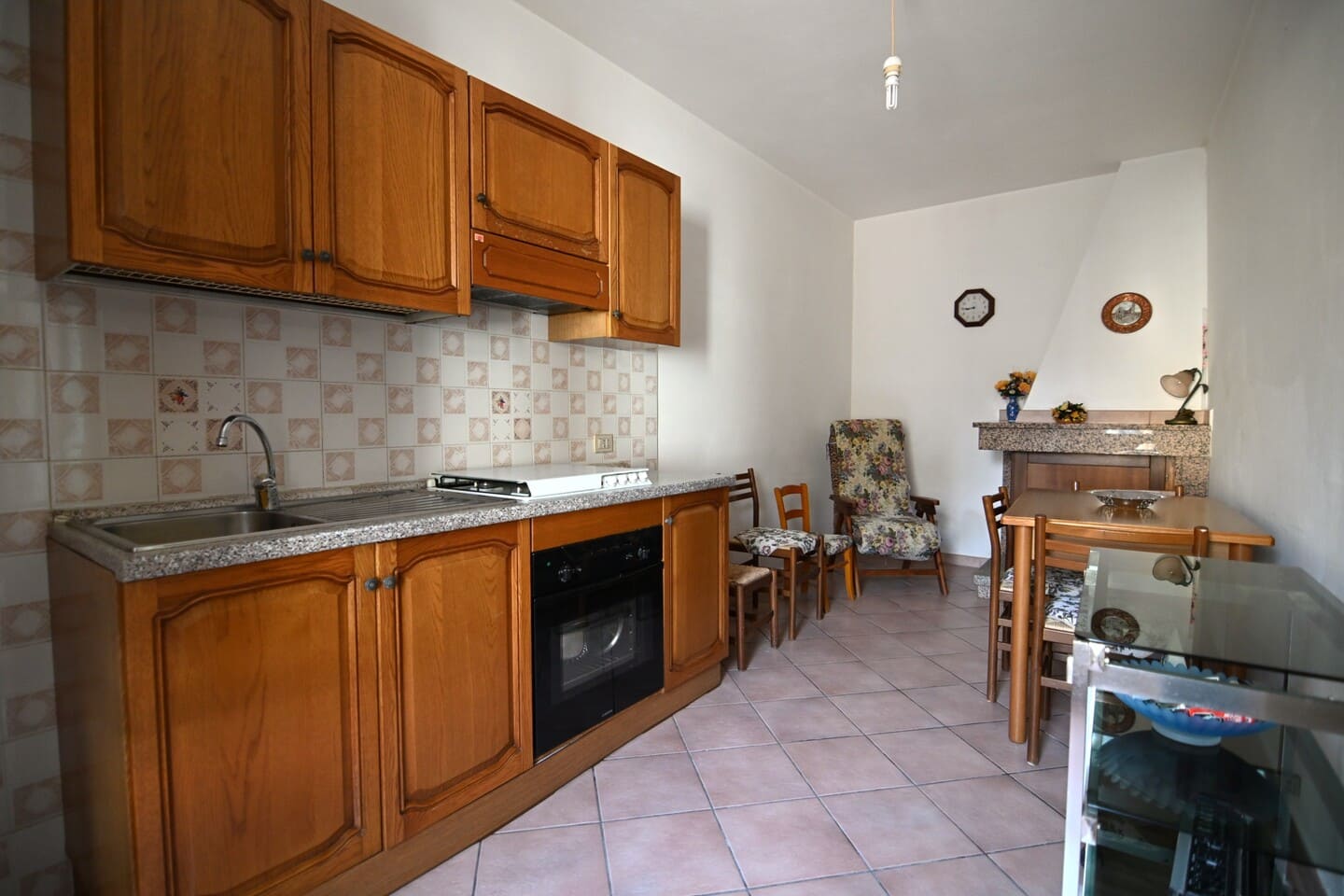 L’abitazione si sviluppa su due livelli ben organizzati: varcata la soglia del piano terra, si viene accolti da una spaziosa cucina abitabile dominata da un tipico camino, elemento che dona carattere a tutto l’ambiente. Accanto alla cucina trova spazio un ambiente versatile, attualmente adibito a salotto ma perfetto per essere utilizzato come prima camera da letto, servito da un bagno funzionale e spazioso disimpegno.