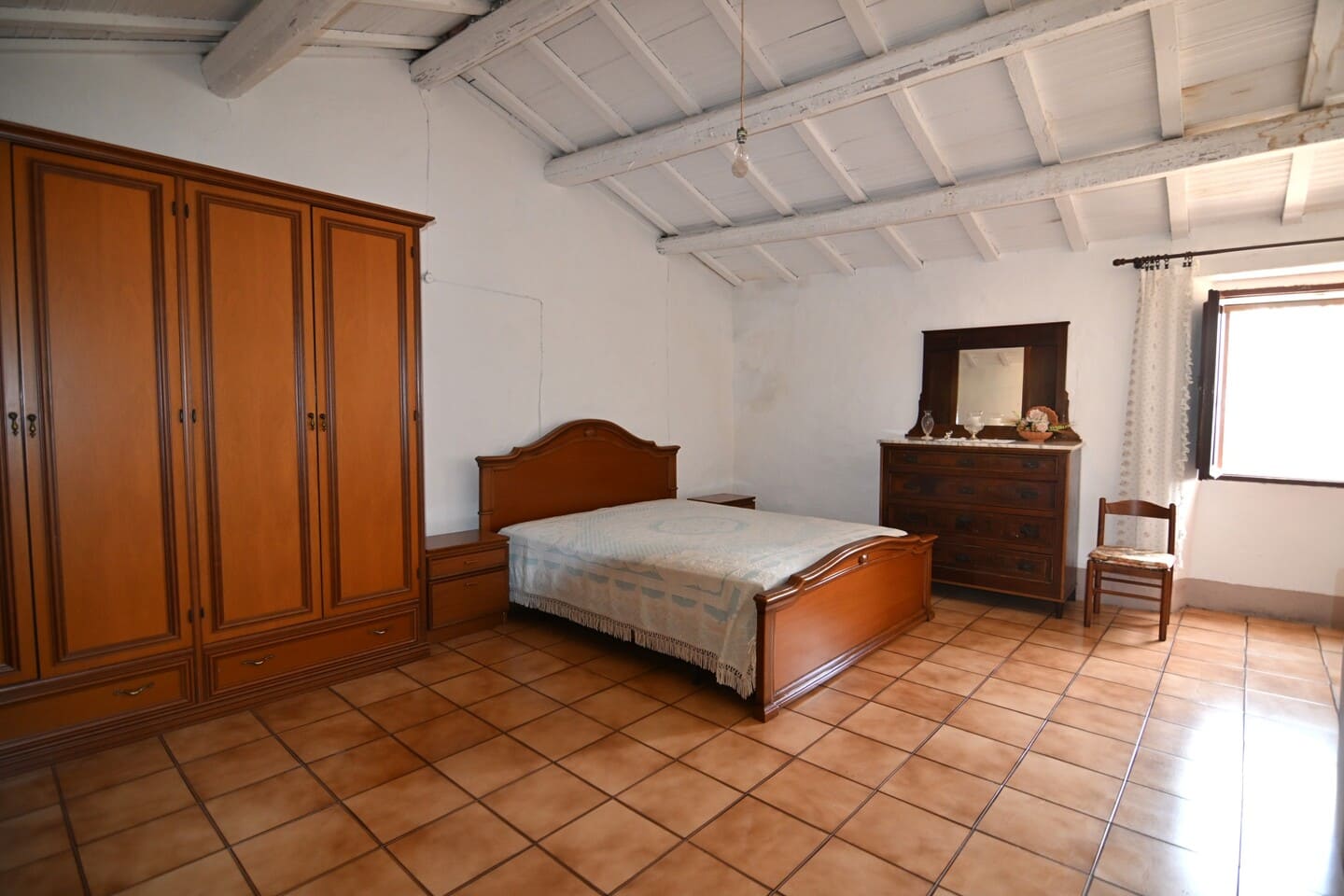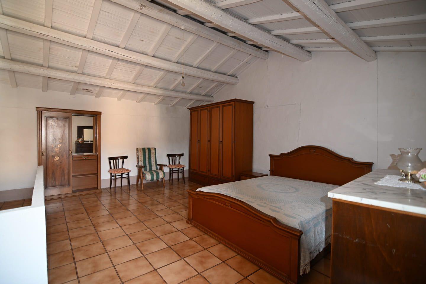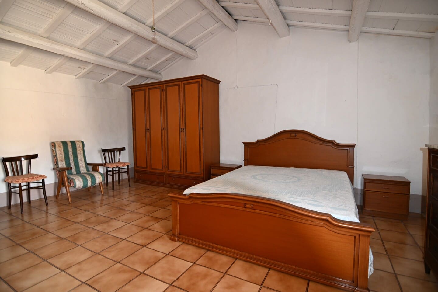 Salendo al piano superiore, la casa svela il suo lato più intimo e suggestivo: una grande camera padronale caratterizzata da un meraviglioso soffitto mansardato con travi a vista, che crea un’atmosfera accogliente e senza tempo.