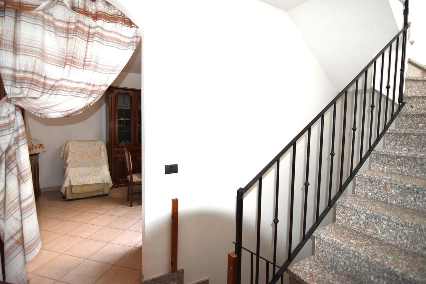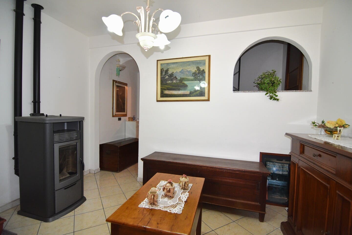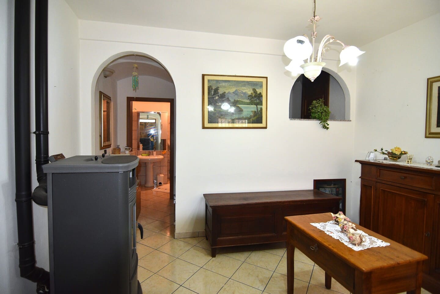 Il piano terra si apre su un luminoso salotto, arricchito da una stufa a pellet canalizzata, capace di riscaldare l’intera casa. Un’elegante arcata conduce al bagno principale, completo di ripostiglio, e alla scala che porta alla zona notte, dove troviamo due confortevoli camere da letto al primo piano.