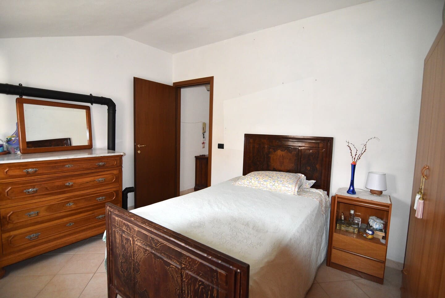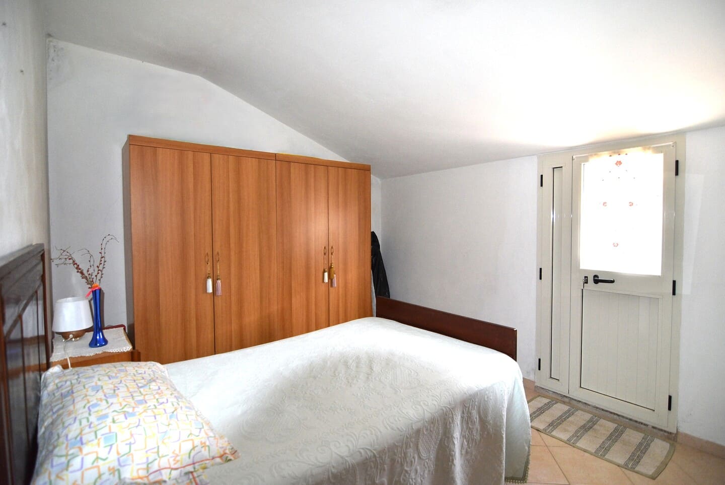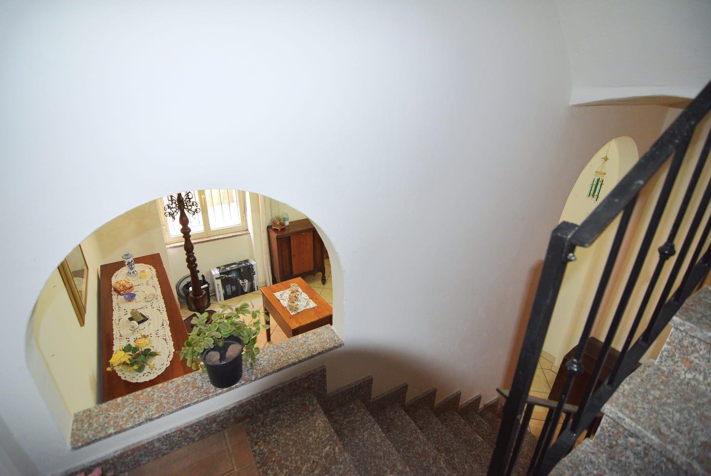 Il piano terra si apre su un luminoso salotto, arricchito da una stufa a pellet canalizzata, capace di riscaldare l’intera casa. Un’elegante arcata conduce al bagno principale, completo di ripostiglio, e alla scala che porta alla zona notte, dove troviamo due confortevoli camere da letto al primo piano.