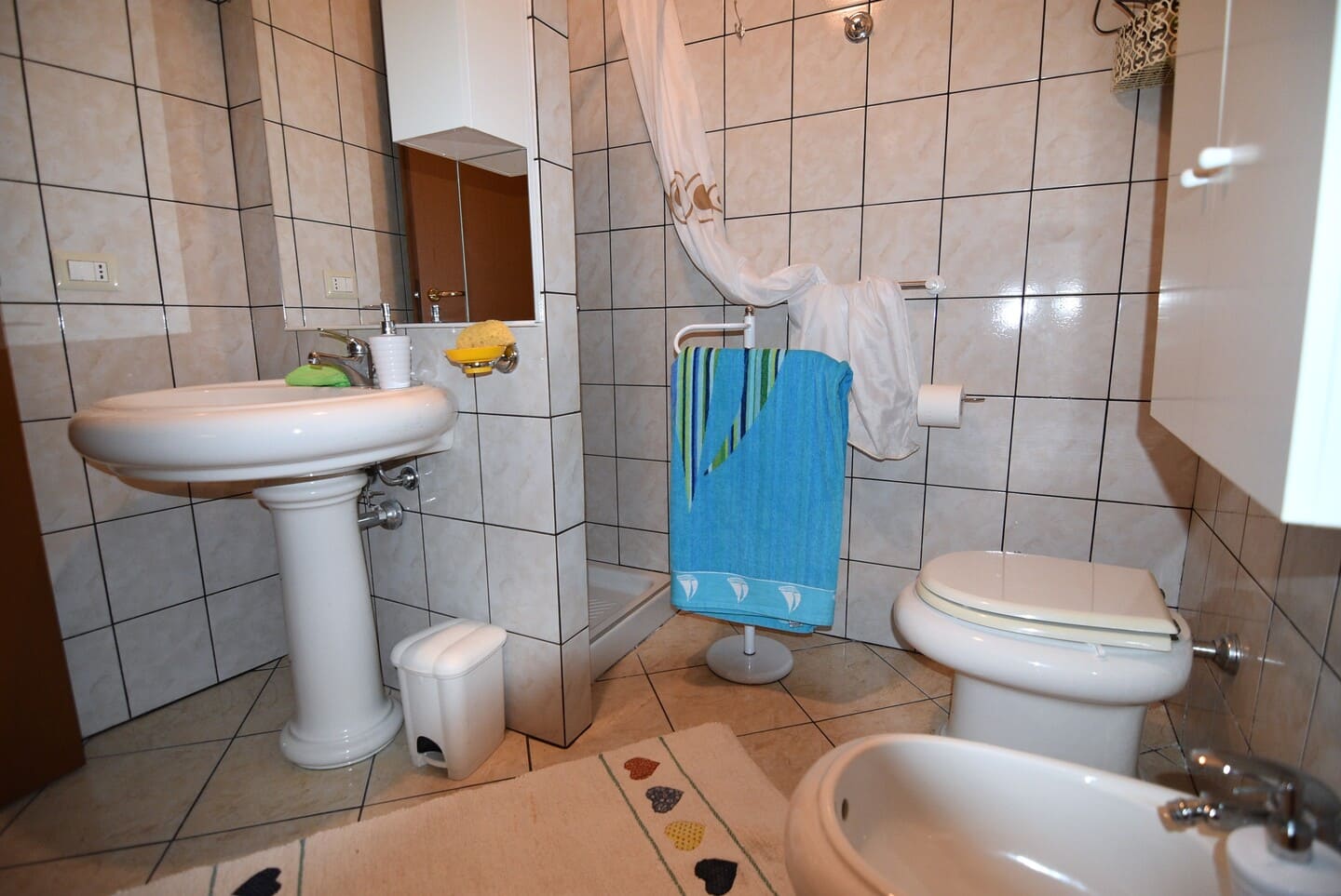All’ultimo piano si trova un pratico spazio esterno con rimessa e lavabo, oltre a un secondo bagno con box doccia. Da qui si accede a una terrazza ampia, soleggiata e panoramica, da cui è possibile godere di una splendida vista sul paese, sulla Basilica monumentale di Santa Maria della Neve e sul mare.