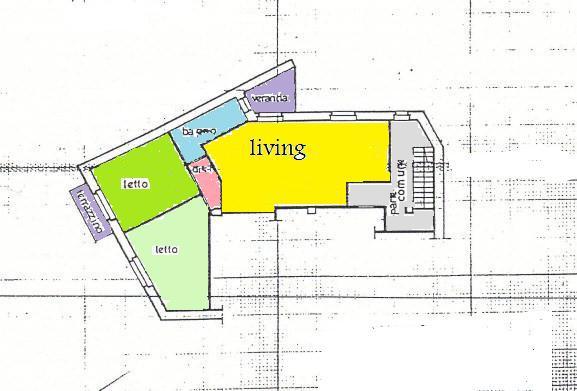 L’appartamento accoglie con un ambiente ampio e dotato di caminetto, con accesso ad una veranda adibita a locale lavanderia e con angolo cottura con cucina a vista.