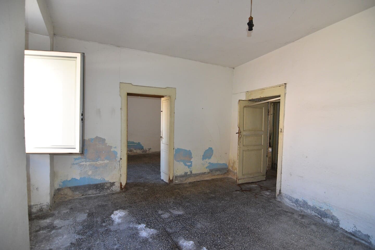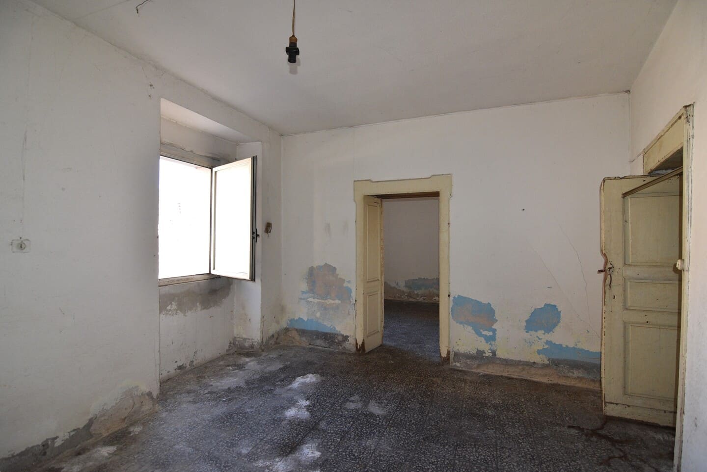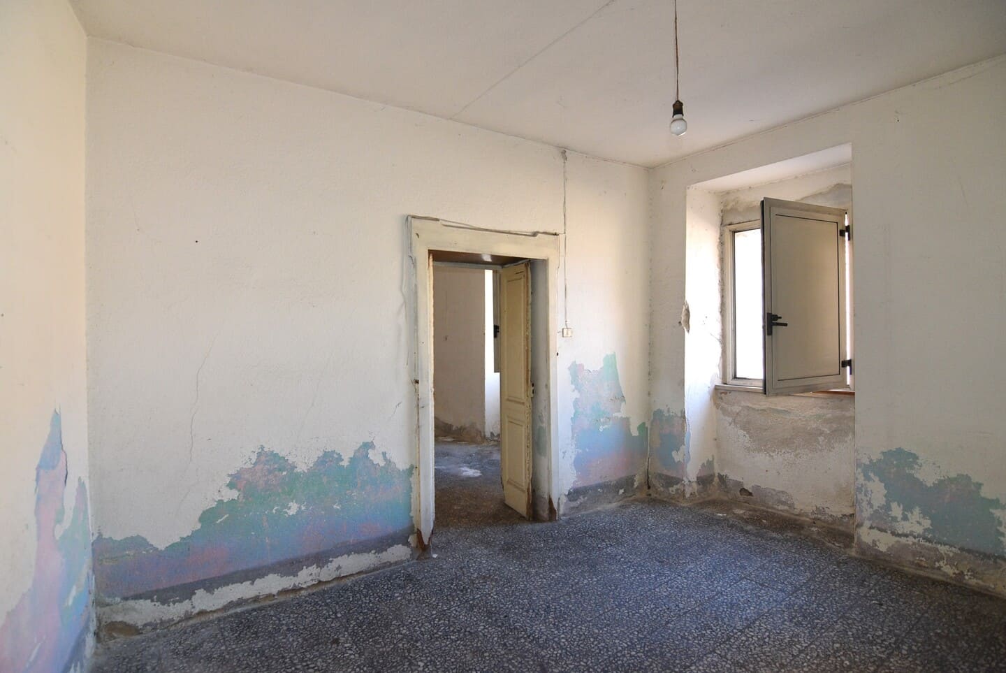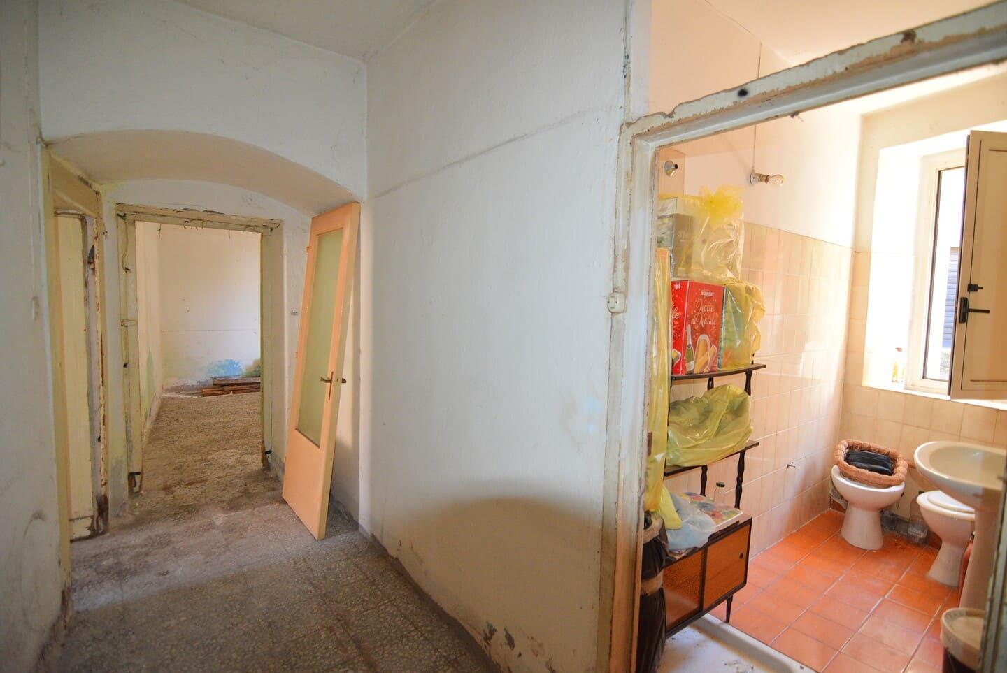 L’appartamento al piano terra, accessibile direttamente dal Corso Umberto, gode di una posizione centrale e strategica. Sebbene necessiti di un intervento di ristrutturazione integrale, gli spazi interni sono generosi e ben distribuiti. L’ingresso si apre su una cucina abitabile caratterizzata da un camino tradizionale, mentre i restanti quattro vani, ampi e ben esposti alla luce naturale, offrono la flessibilità necessaria per essere configurati come camere da letto o zone living a seconda delle esigenze.
