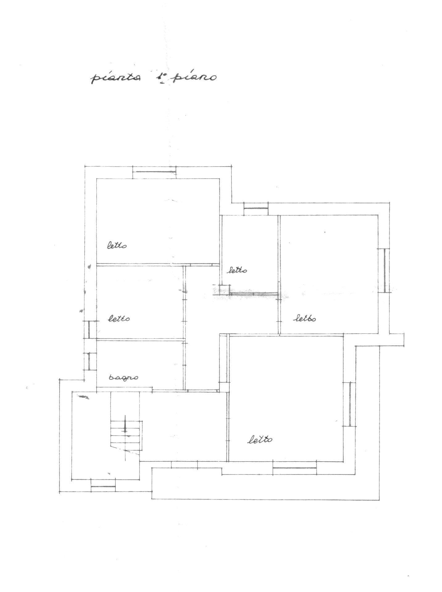 Il primo piano ospita cinque locali, compresi due camere singole, due doppie e un bagno con vasca. Dal quinto locale, più spazioso, si accede a un balcone soleggiato che si affaccia su due lati dell’abitazione, permettendo di godere della vista sul giardino.